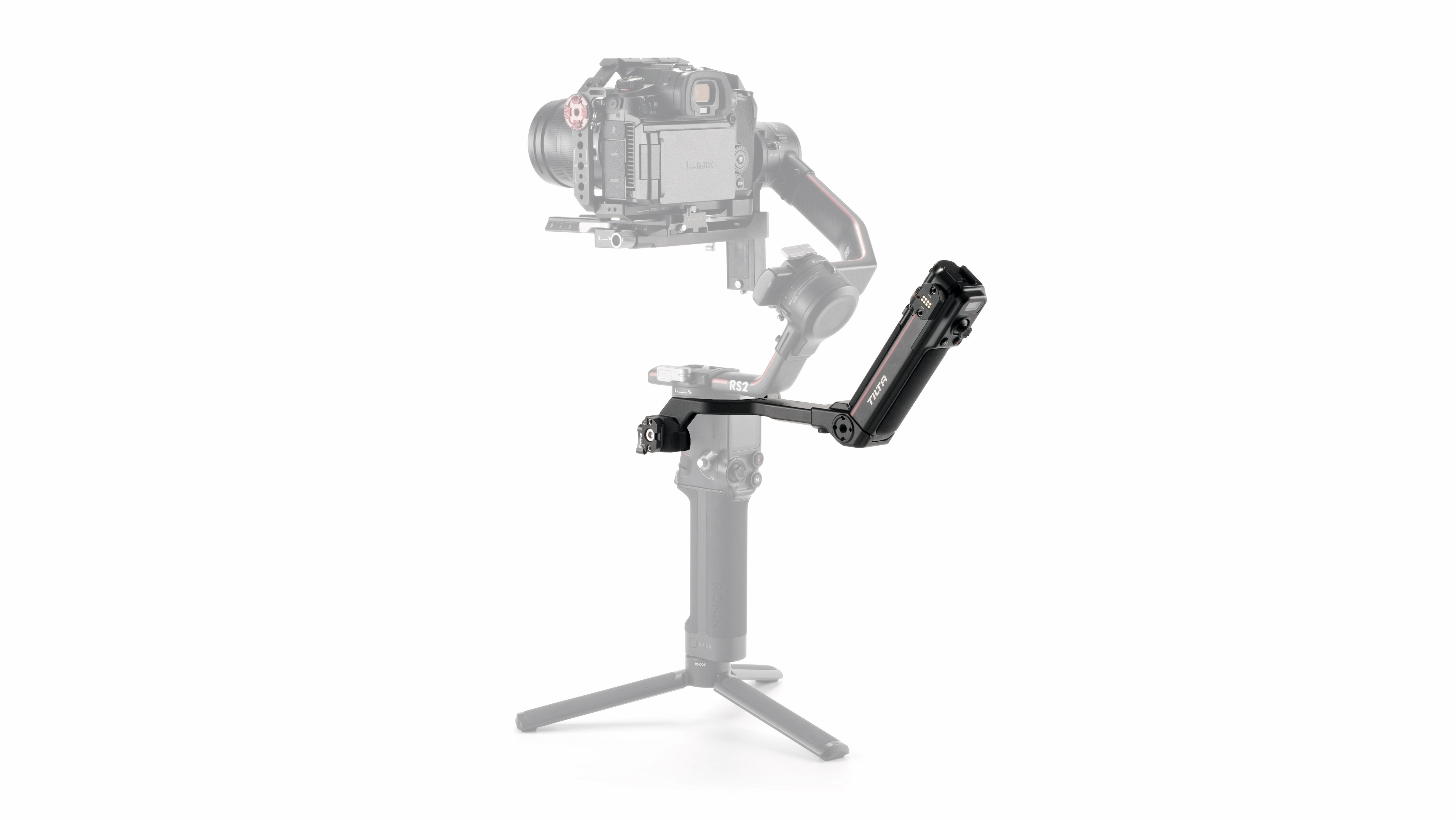 This handle mounts via the NATO connectors on the side of the RS2, RS3 Pro and RS4 Pro gimbal body and powers via the Ronin’s Battery Handle.