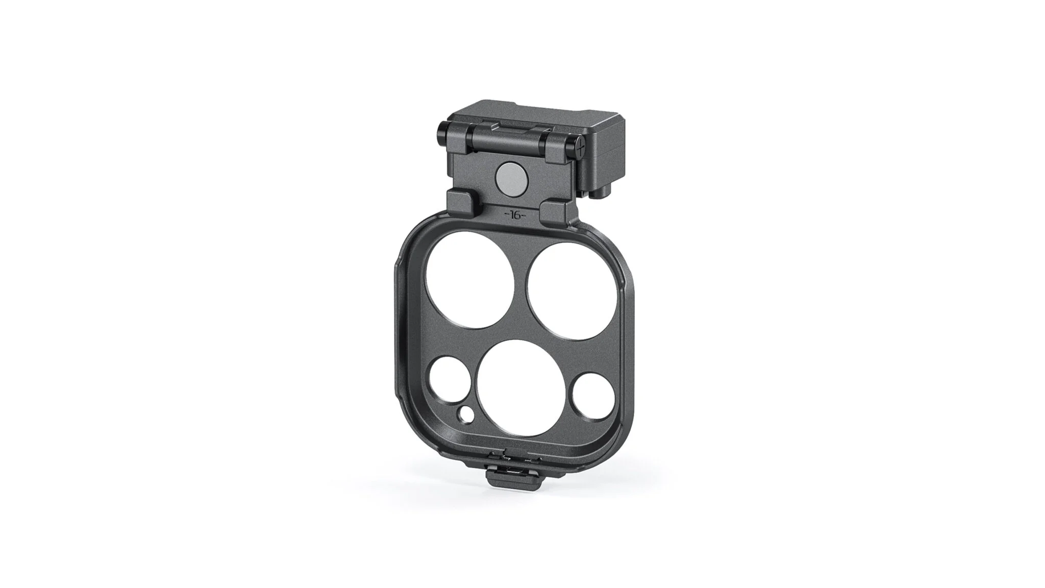 The Tray features a swivel mount that allows the tray to drop into place over all three lenses of the iPhone 16 Pro/Pro Max.