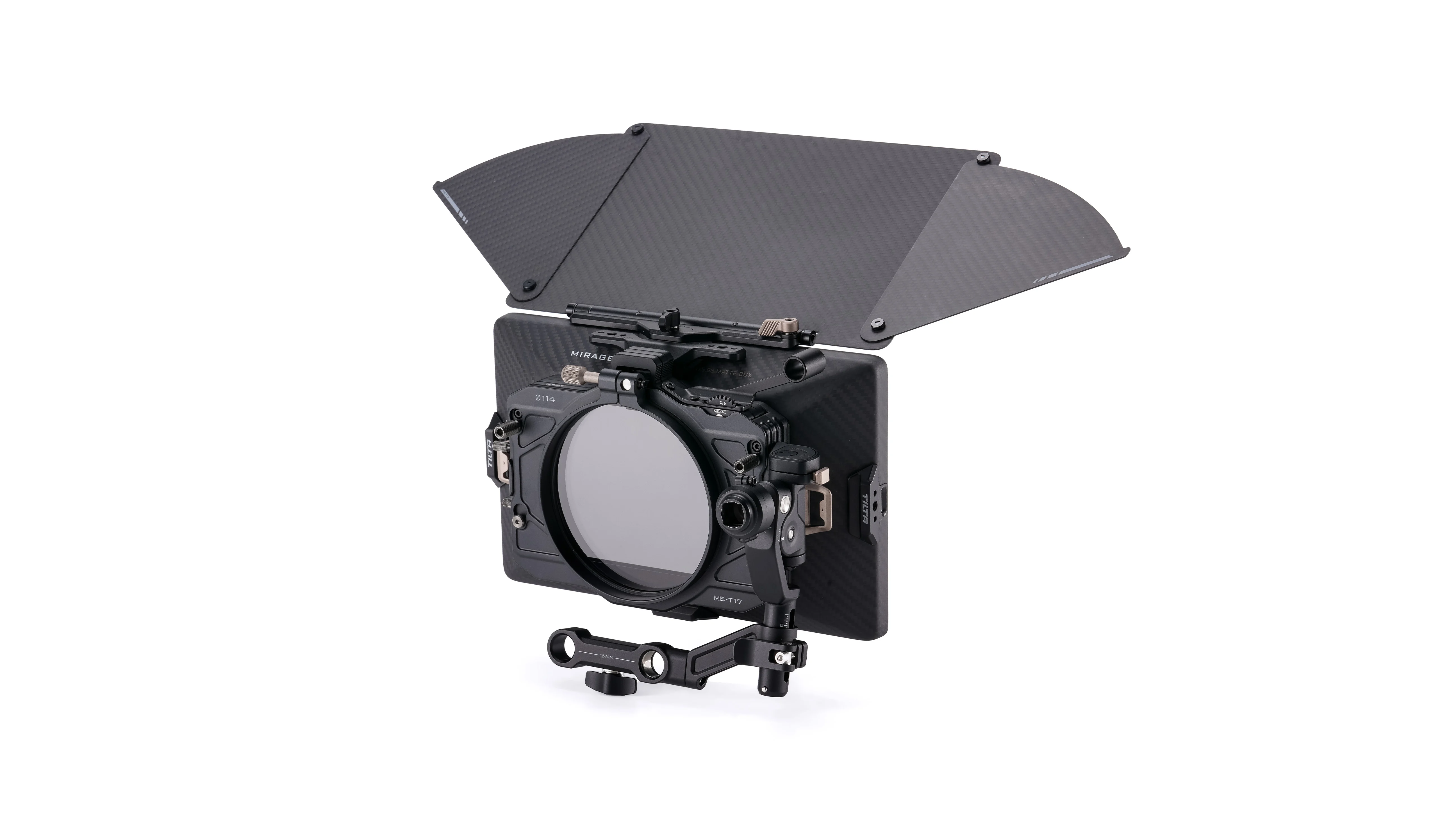 Crafted with attention to detail, the Mirage Pro is a clamp-on matte box designed to accommodate various lens sizes, supporting lenses with outer diameters of 95mm, 110mm, 114mm and 134mm as well as photography lenses with the following filter thread adapters: 67mm, 72mm, 77mm, 82mm.