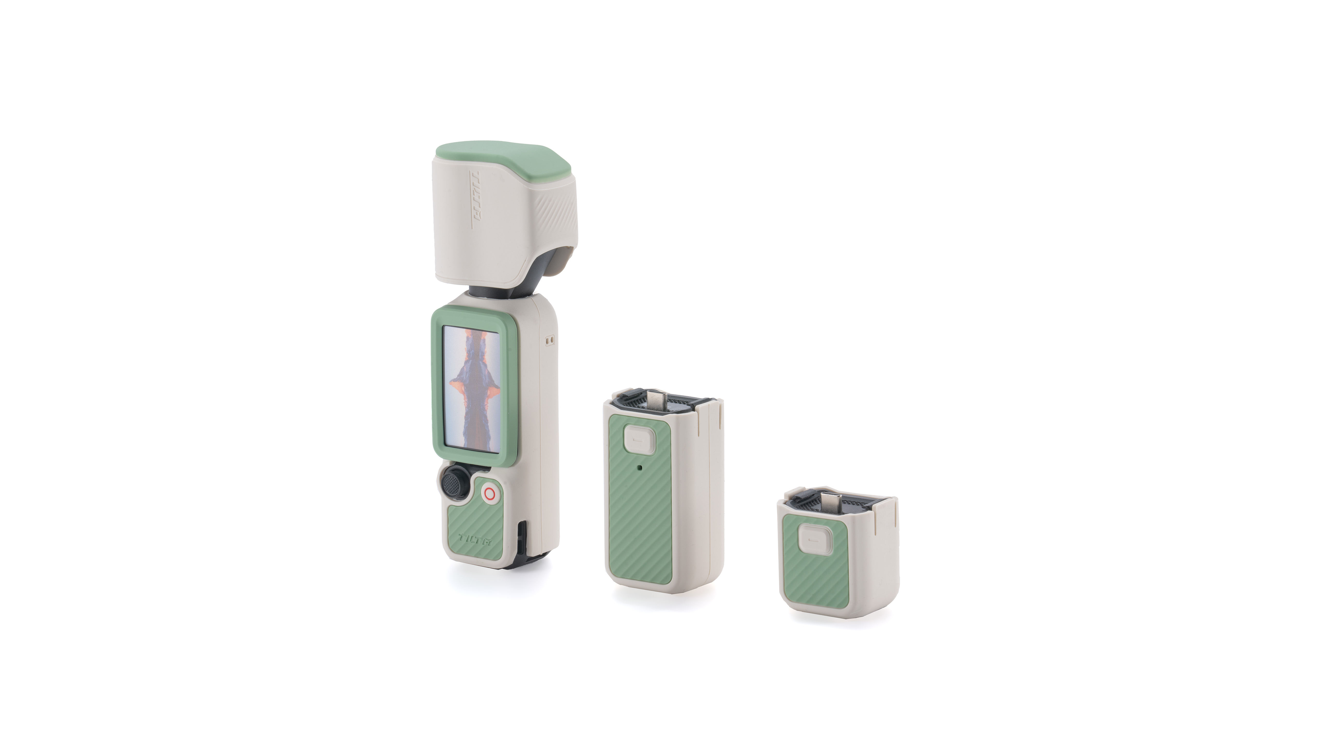 This kit builds on the Base Kit by adding the Silicone Cover for the Battery Handle, completing full silicone coverage across every component of your Pocket 4 setup. All five pieces — Gimbal, Body, Screen, Extension Handle, and Battery Handle — are precision-fitted to their respective parts, maintaining full access to all buttons and controls without any interference. The wave-texture pattern on the grip panels across the body, extension handle, and battery handle covers ensures a secure, comfortable, anti-slip hold at all times. The gimbal cover protects the head while still allowing the screen to rotate freely. Available in Lilac Purple, Celadon White, and Sand Beige with mix-and-match flexibility to make your Pocket 4 truly your own.