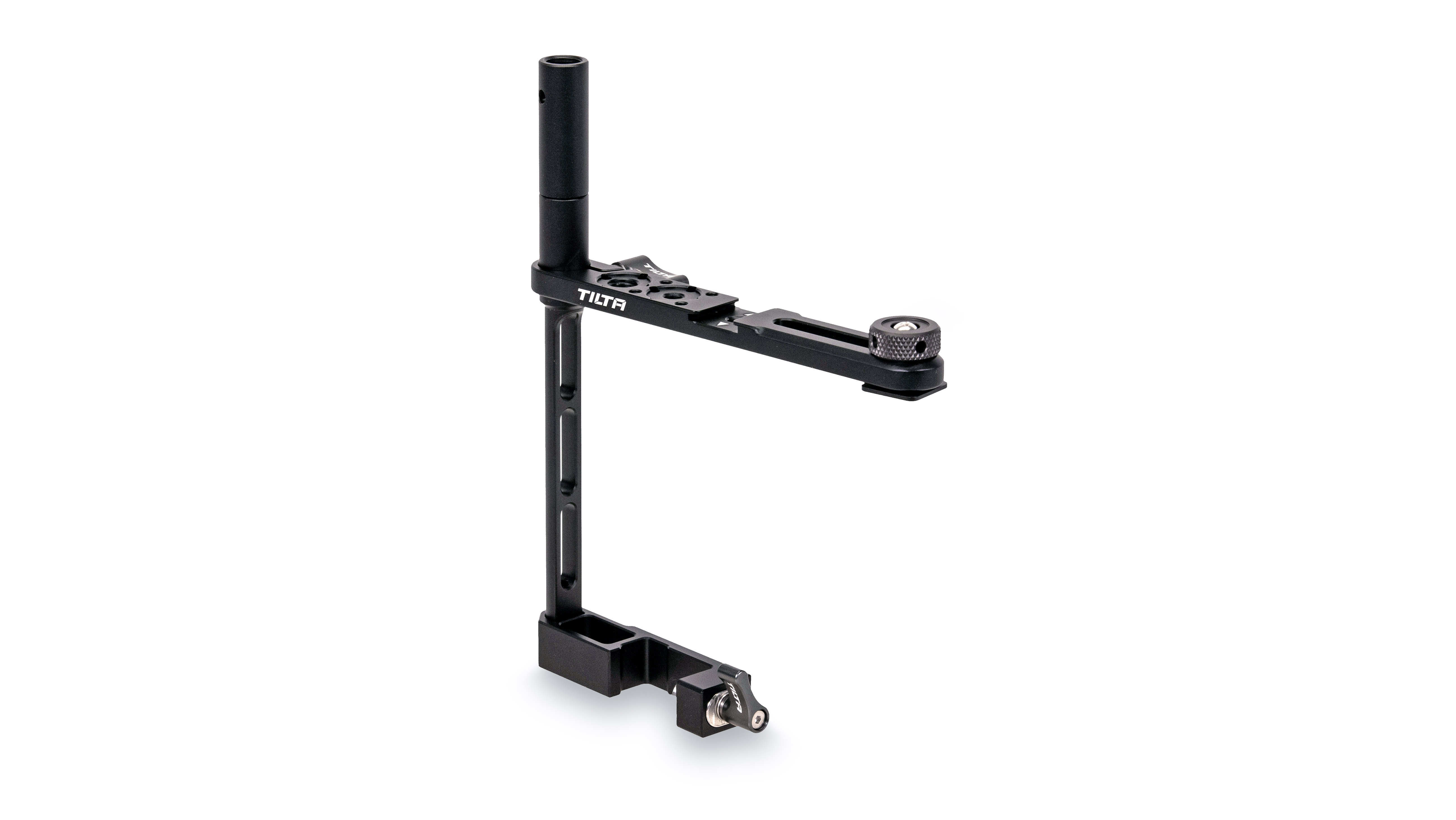 This Top Camera Support Bracket attaches from the base of the height adjustment arm of the DJI RS2, RS3 & RS3 Pro to the top of your camera via a cold shoe mounting point.